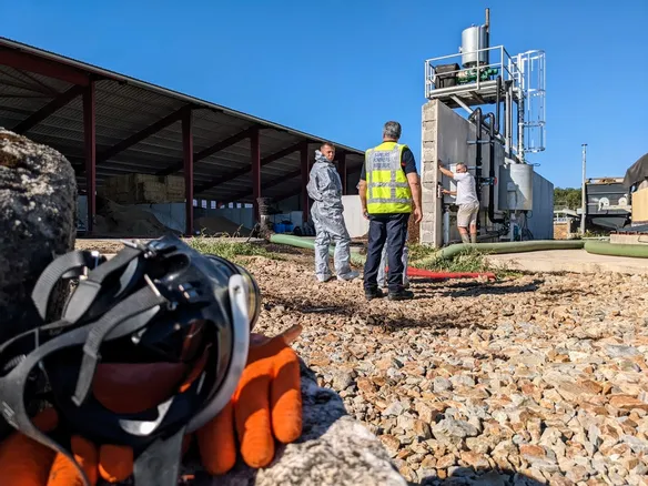 « Nous avons un déversement sur site de la matière, principalement de la déjection animale, qui sert à produire le gaz à l'extérieur du contenant. Il n'y a pas de pollution extérieure au site, indique le capitaine Arnaud Molle, chef de colonne. Nous avons, en parallèle, une production de gaz dans l'air, particulièrement de soufre. Nous nous sommes fixés l'objectif de pomper l'excès de produit qui se déverse, en gérant le risque gaz, sachant que c'est un gaz toxique et explosif. Actuellement, il est contenu sur le site, il n'y a pas d'impact sur l'extérieur. L'exploitant nous donne un coup de main avec ses outils à disposition. »