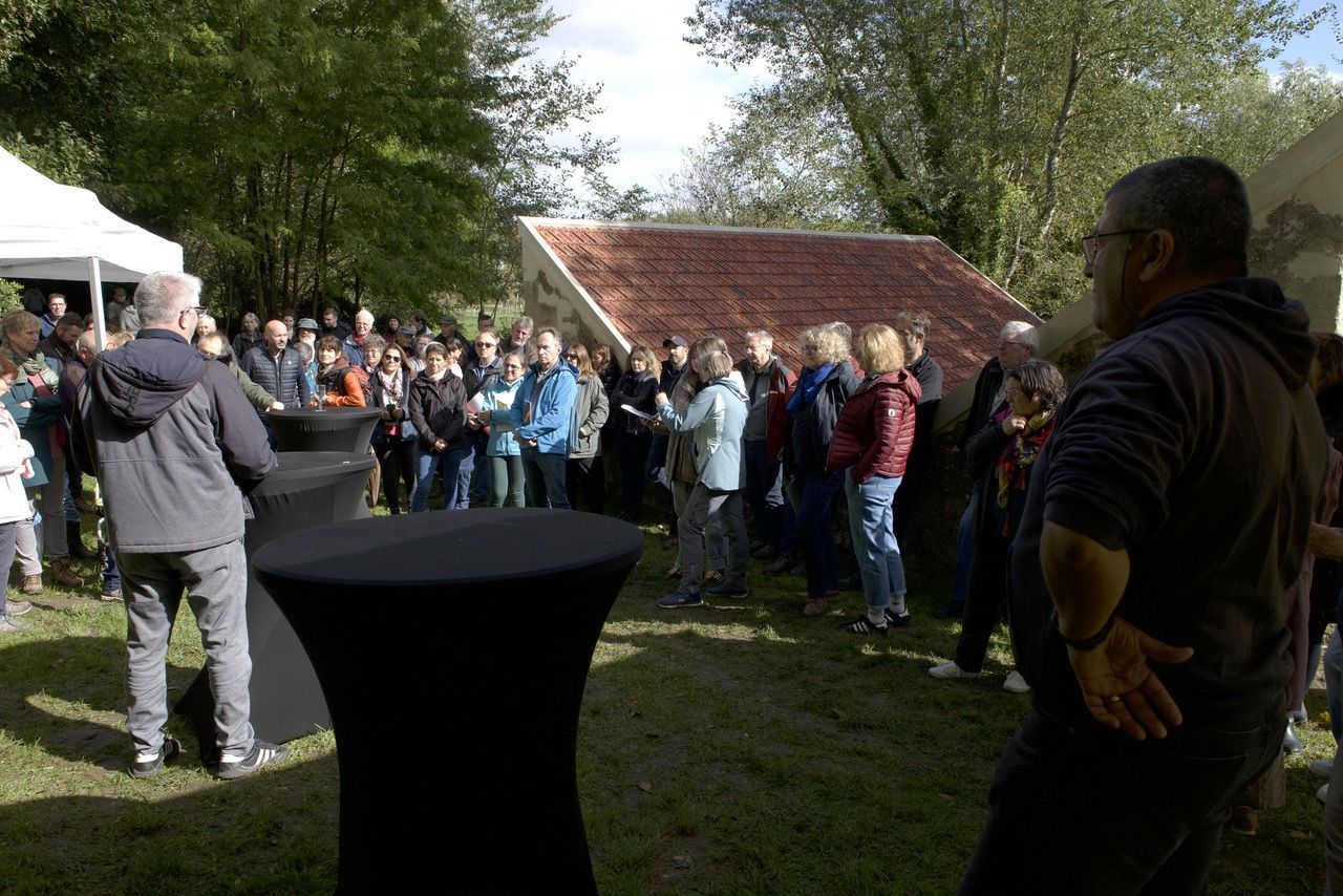 À la mi-journée, les promeneurs ont été rejoints par de nombreux habitants venus assister à l’inauguration du lavoir du Perchay, en présence de M. Grégory Léost, maire du village, et de M. Benjamin Demailly, président du Parc naturel régional du Vexin français. Après les discours et les remerciements, tous se sont retrouvés autour d’un déjeuner-apéritif en plein air, particulièrement apprécié pour sa convivialité.