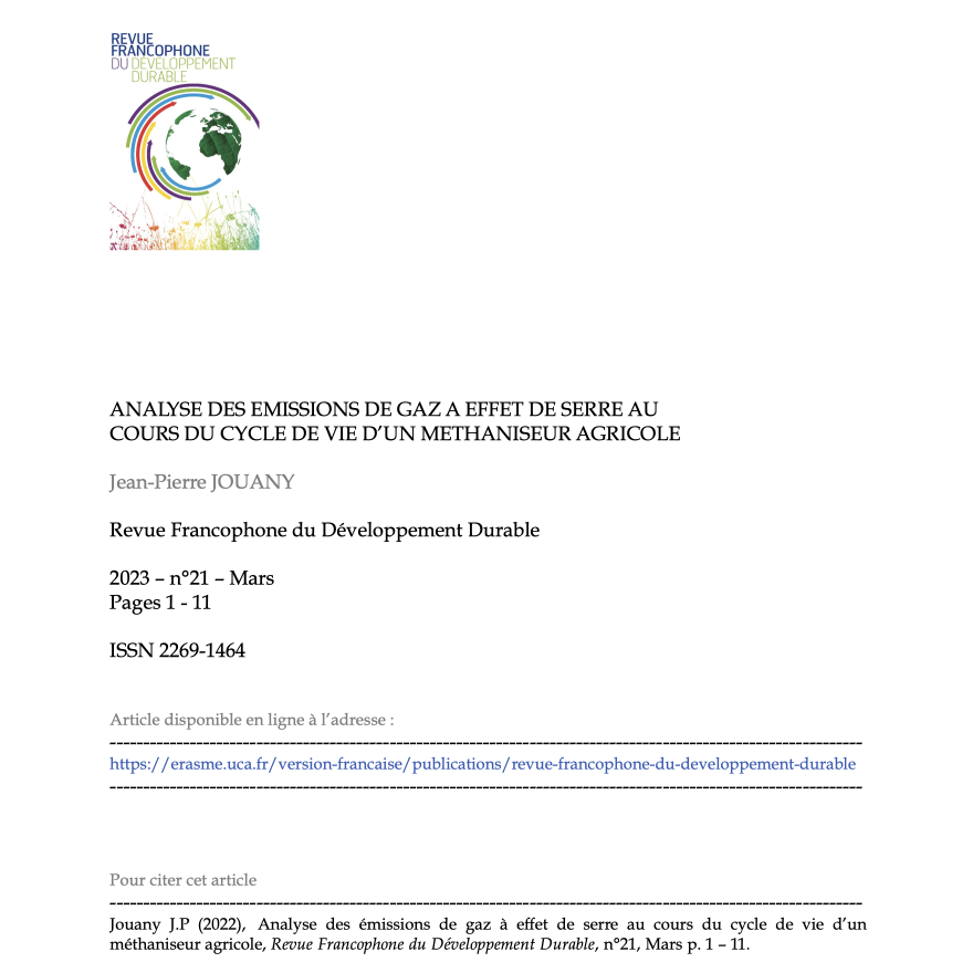 Analyse des emissions de gaz a effet de serre au cours du cycle de vie d’un methaniseur agricole